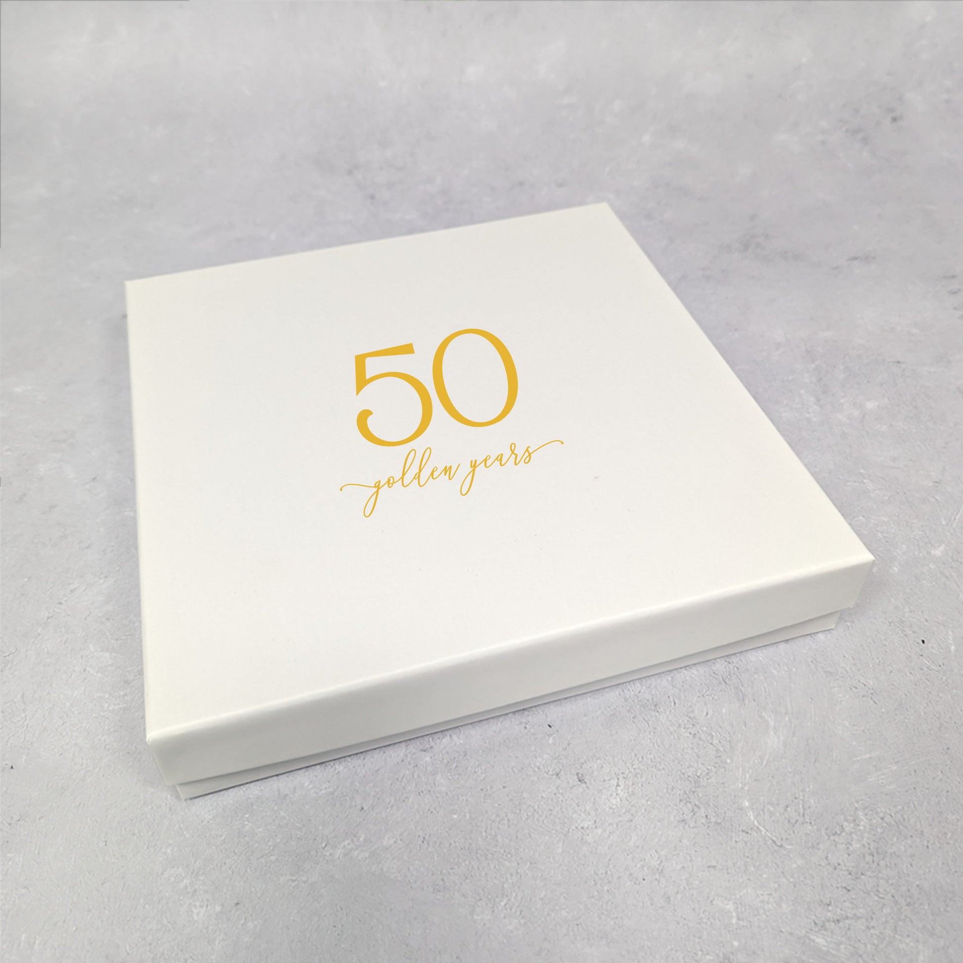 🎁GIFT BOX ADD-ON: Present your scrapbook beautifully in a white gift box, 50 Golden Years will be on the box in a matching colour to the scrapbook text.