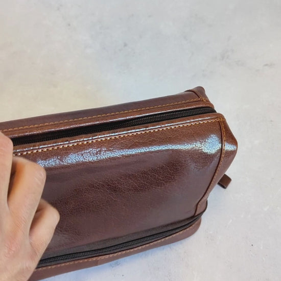 A luxurious and super practical genuine leather men's wash bag, personalised with initials in gold for a classic look.
