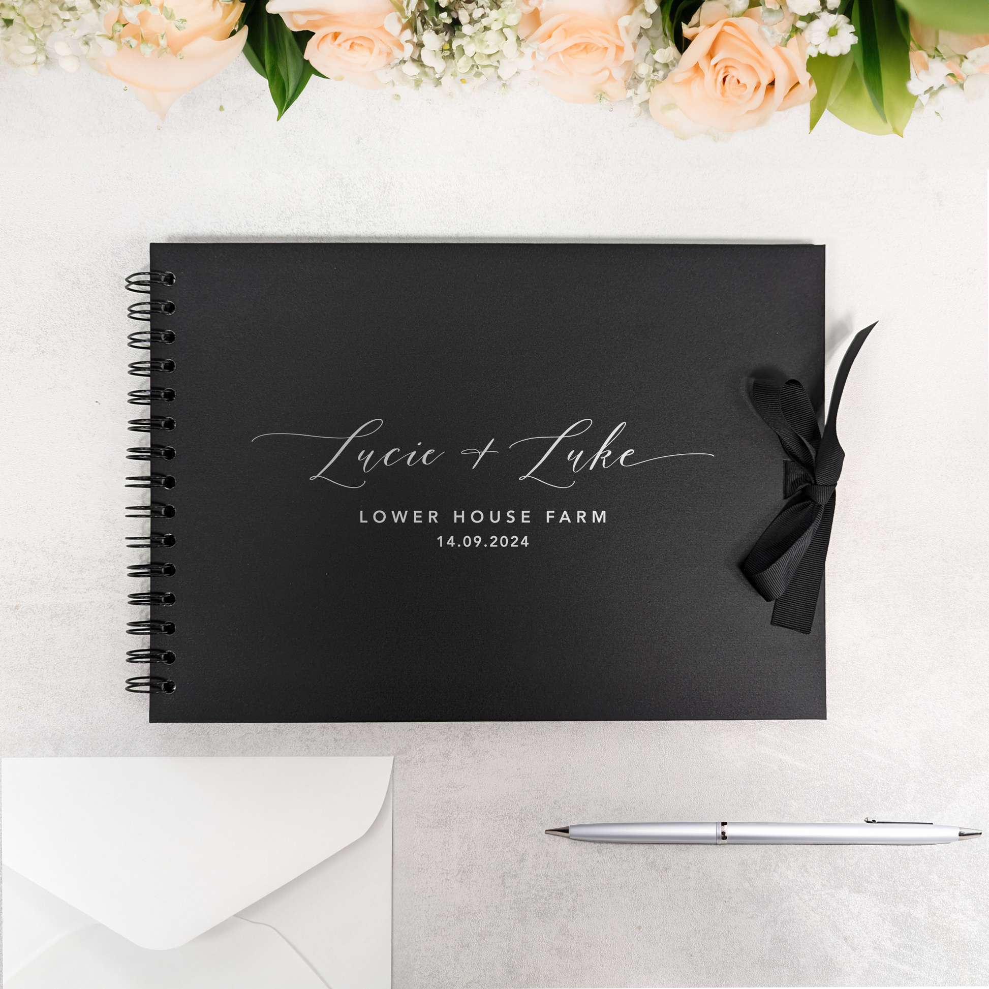 Celebrate your love story with our exquisitely crafted Personalised Wedding Guestbook, a cherished keepsake where memories unfold on every page. Designed for elegance and enduring beauty, this guestbook features a lustrous copper coil and delicate ribbon tie, offering a charming presentation for heartfelt letters, cherished notes, invaluable advice, and pearls of wisdom for the bride and groom.