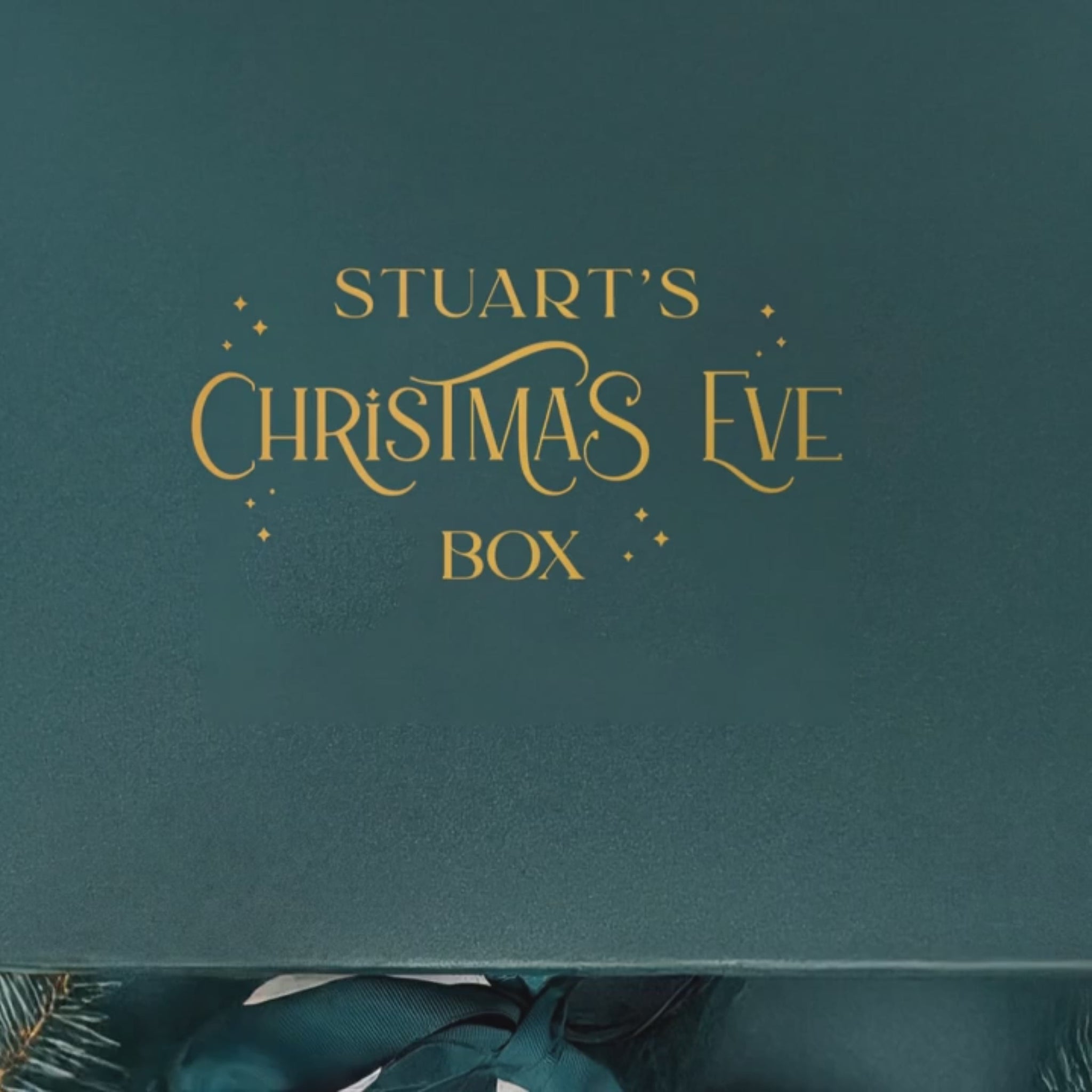 BEAUTIFULLY PERSONALISED: A beautiful whimsical design, suitable for adults and children alike. The "Christmas Eve Box" text is fixed and the top line can be personalised with a name. The design can be in a foil gold, silver, rose gold or black.